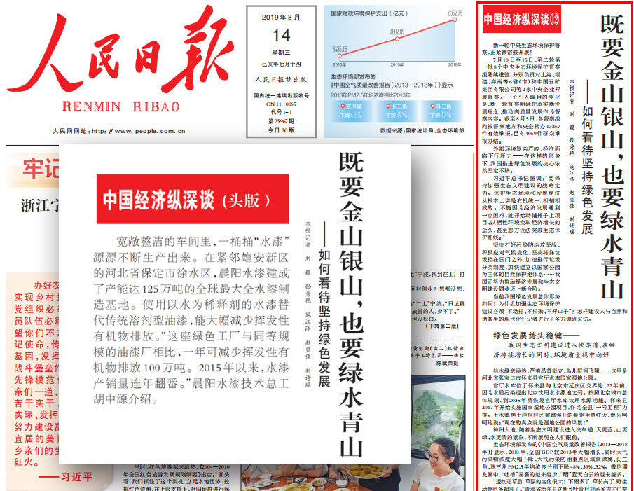 人民日報2019年8月14日署名文章:“中國經(jīng)濟(jì)縱深談”系列述評之十二:既要金山銀山,也要綠水青山