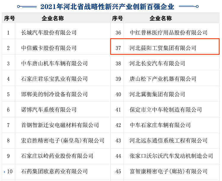 河北省發(fā)改委最新消息,2021年河北省戰(zhàn)略性新興產(chǎn)業(yè)創(chuàng)新百強(qiáng)企業(yè)榜單近日新鮮“出爐”。河北晨陽工貿(mào)集團(tuán)有限公司(晨陽水漆)榮膺2021年河北省戰(zhàn)略性新型產(chǎn)業(yè)創(chuàng)新百強(qiáng)企業(yè),排名第37位。晨陽水漆此前曾多次入選河北省戰(zhàn)略性新興產(chǎn)業(yè)百強(qiáng)領(lǐng)軍企業(yè)和創(chuàng)新百強(qiáng)企業(yè)名單。